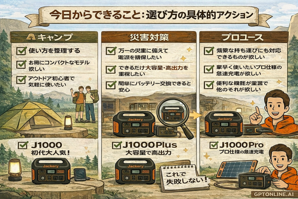 迷っているならJackery 1000 Plusを選んでおけば後悔はほぼありません。私自身、長く使えるポータブル電源を選んでからキャンプも防災も格段に快適になりました。