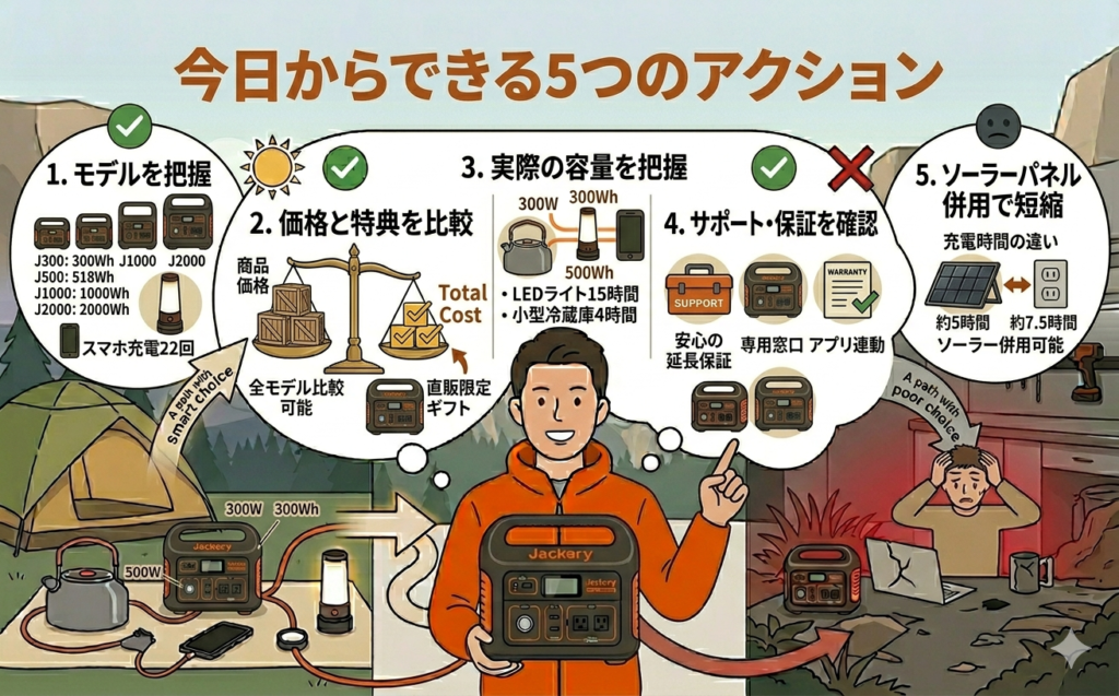 どのJackeryモデルが自分の使い方に合っているか、まだ迷っている方は、こちらの比較ページも参考にしてみてください。