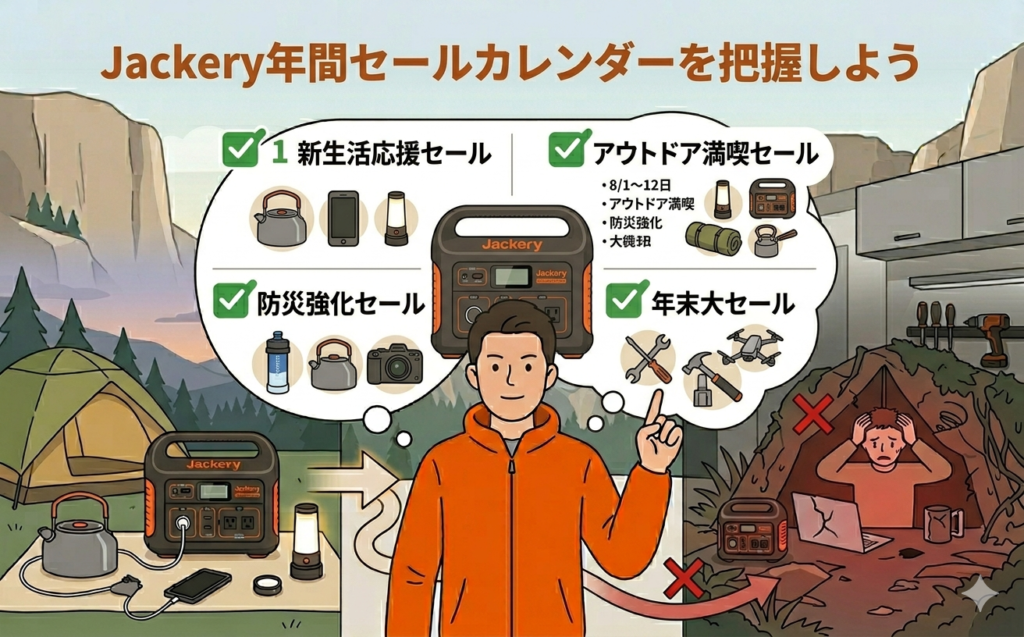 この記事では、Jackeryの年間セールカレンダーを整理して、いつ・どのくらいお得になるのかを徹底解説します。